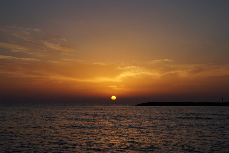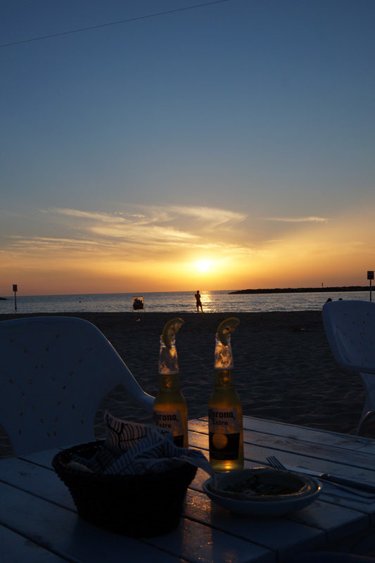 Au bord de la mer, l’esplanade me rappelle étrangement la ville de Miami. Ici, le sport est très présent malgré la chaleur écrasante : les runners font leur footing, les volleyeurs jouent sur le sable fin, les boxeurs s’entraînent au Krav-maga (boxe israélienne) et les telaviviens utilisent beaucoup le vélo pour se déplacer. De nombreux bars hype longent les plages et nous optons pour une Corona bien fraiche, au moment où un magnifique coucher de soleil tombe sur la ville.