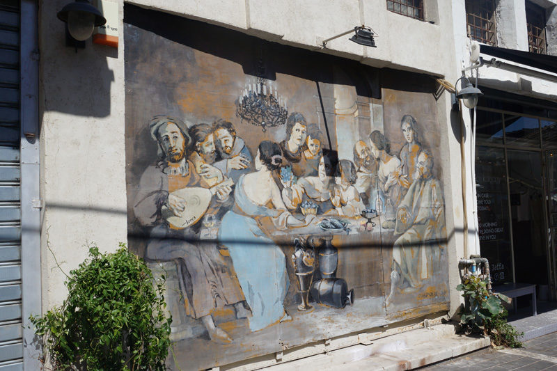En ressortant à l’autre bout du marché, nous débarquons dans un tout autre style de la ville, bien moins moderne que ce que l’on avait pu voir jusque-là. Des vieilles voitures garées, des graffitis sur les murs, des chats de gouttières qui errent. Nous pouvons dire que nous sommes plus dans une ambiance un peu « comme au bled » qui nous fait découvrir un tout autre aspect de Tel Aviv.