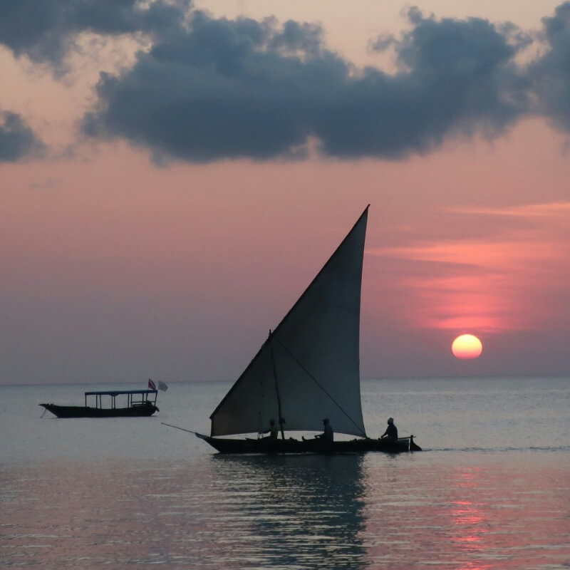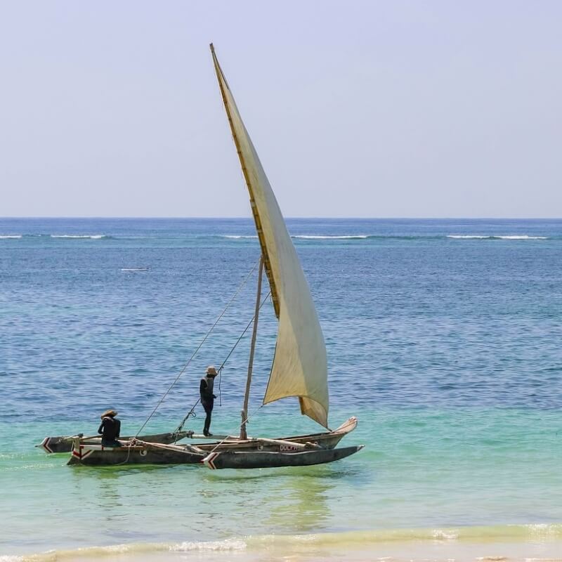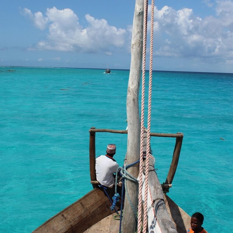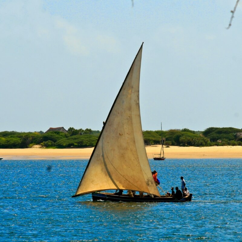Sortie en dhow (bateau traditionnel) sur l’océan Indien, exploration des récifs et détente sur les bancs de sable à marée basse.