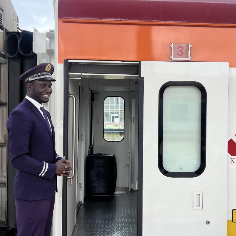 Train vers la côte kényane. Installation à Diani Beach, réputée pour son sable blanc et ses eaux turquoise.